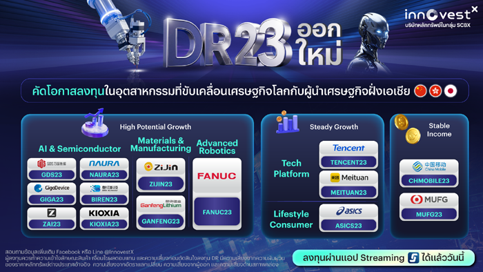 InnovestX เปิดตัว DR23 ชุดใหม่ 14 หลักทรัพย์ เปิดโอกาสลงทุน AI เซมิคอนดักเตอร์ และอุตสาหกรรมสำคัญของเศรษฐกิจโลกผ่านหุ้นผู้นำเอเชีย