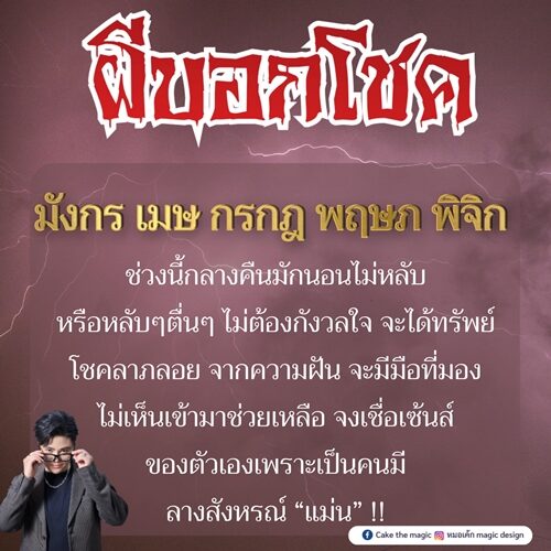 หมอเค้ก Magic stone เผย ดวงชะตา 5 ราศี ผีบอกโชค จะได้ทรัพย์ โชคลาภลอยจากความฝัน เชื่อเซนส์ของตัวเองเพราะเป็นคนมีลางสังหรณ์แม่น