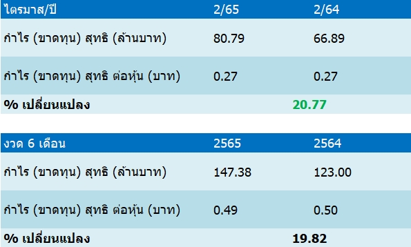 นอกจากนั้นบริษัทฯ ยังประกาศจ่ายปันผลจากงวดดำเนินงานวันที่ 1 ม.ค. 2565 ถึงวันที่ 30 มิ.ย. 2565 เป็นเงินสดในอัตรา 0.25 บาท/หุ้น กำหนดขึ้นเครื่องหมาย XD วันที่ 24 ส.ค.65 และกำหนดจ่ายเงินปันผลในวันที่ 9 ก.ย.65