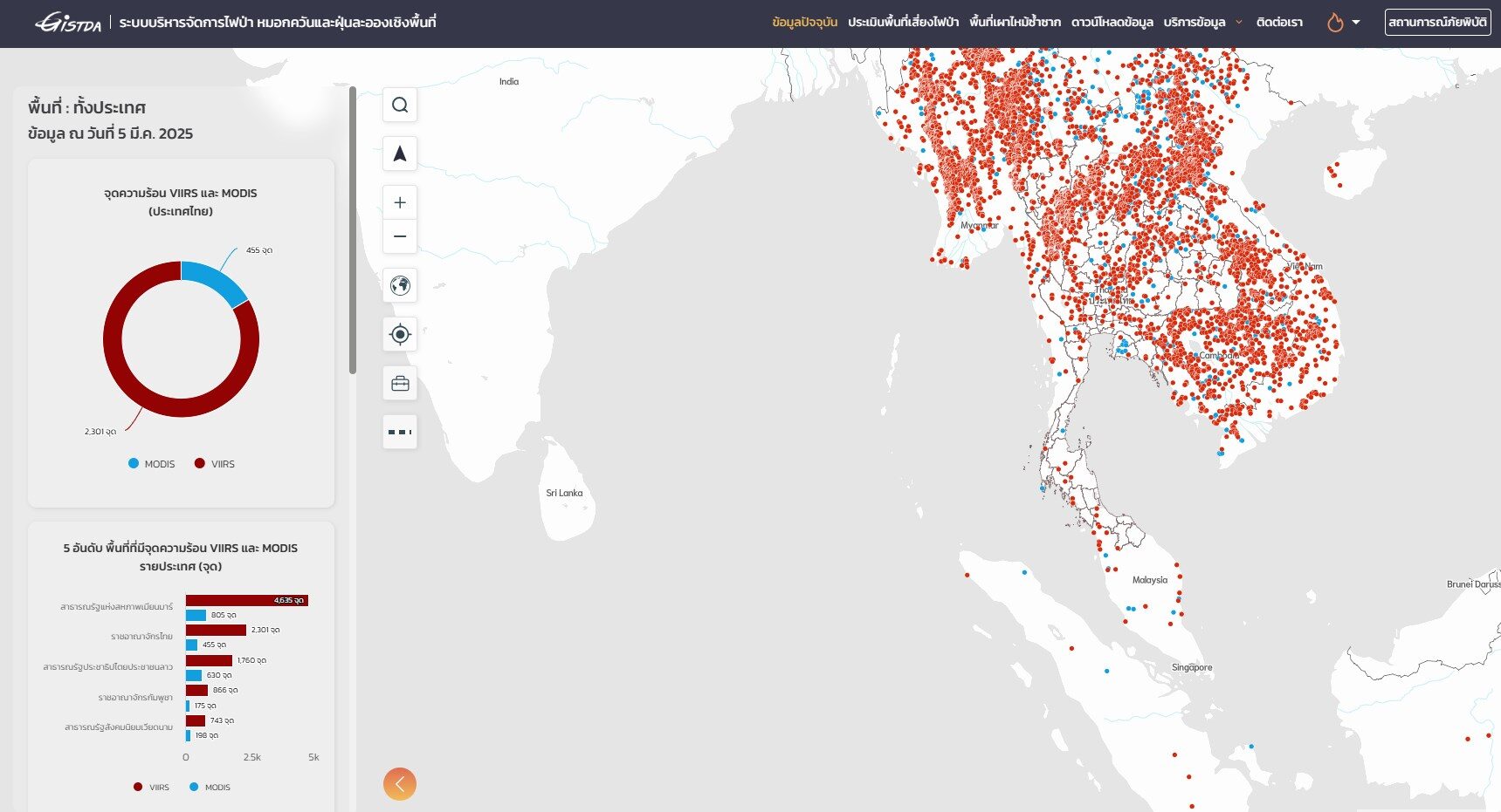 ทั้งนี้ ข้อมูลจากดาวเทียมระบุว่าจุดความร้อนในประเทศไทยเกิดขึ้นใน