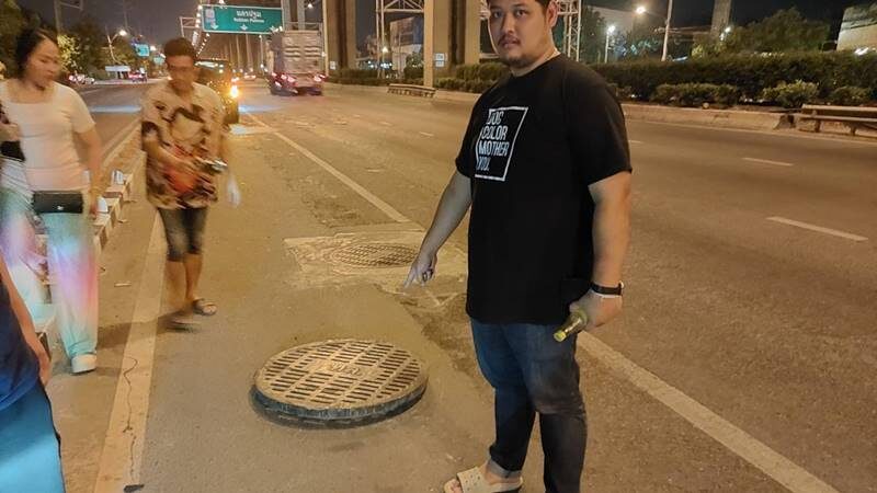 อุบัติเหตุที่เกิดขึ้นเกิดจากฝาท่อเหล็กวงกลมขนาดใหญ่ ได้กระเด้งเข้าใต้ท้องรถ จนรถพังไม่สามารถขับต่อไปได้ พอลงจากรถก็พบหลุมฝาท่อนั่นเปิดอยู่ ในส่วนรถยนต์เกิดการสะดุดเพราะเพลารถมีปัญหา จนต้องเรียกประกันรถยนต์ และเจ้าหน้าที่ประกันก็พาสำรวจที่เกิดเหตุ ก่อนจะบันทึกภาพและไปลงบันทึกประจำวันที่ สน.ตลิ่งชัน