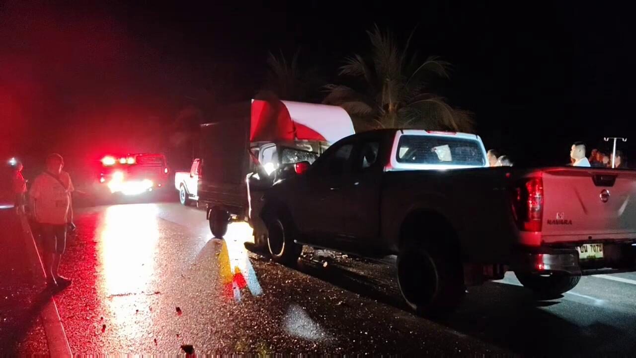กำนัน ขับกระบะไปตลาด ข้ามเลนพุ่งชนรถช่างแอร์ เมียคนขับถูกอัดก๊อปปี้ดับสลด