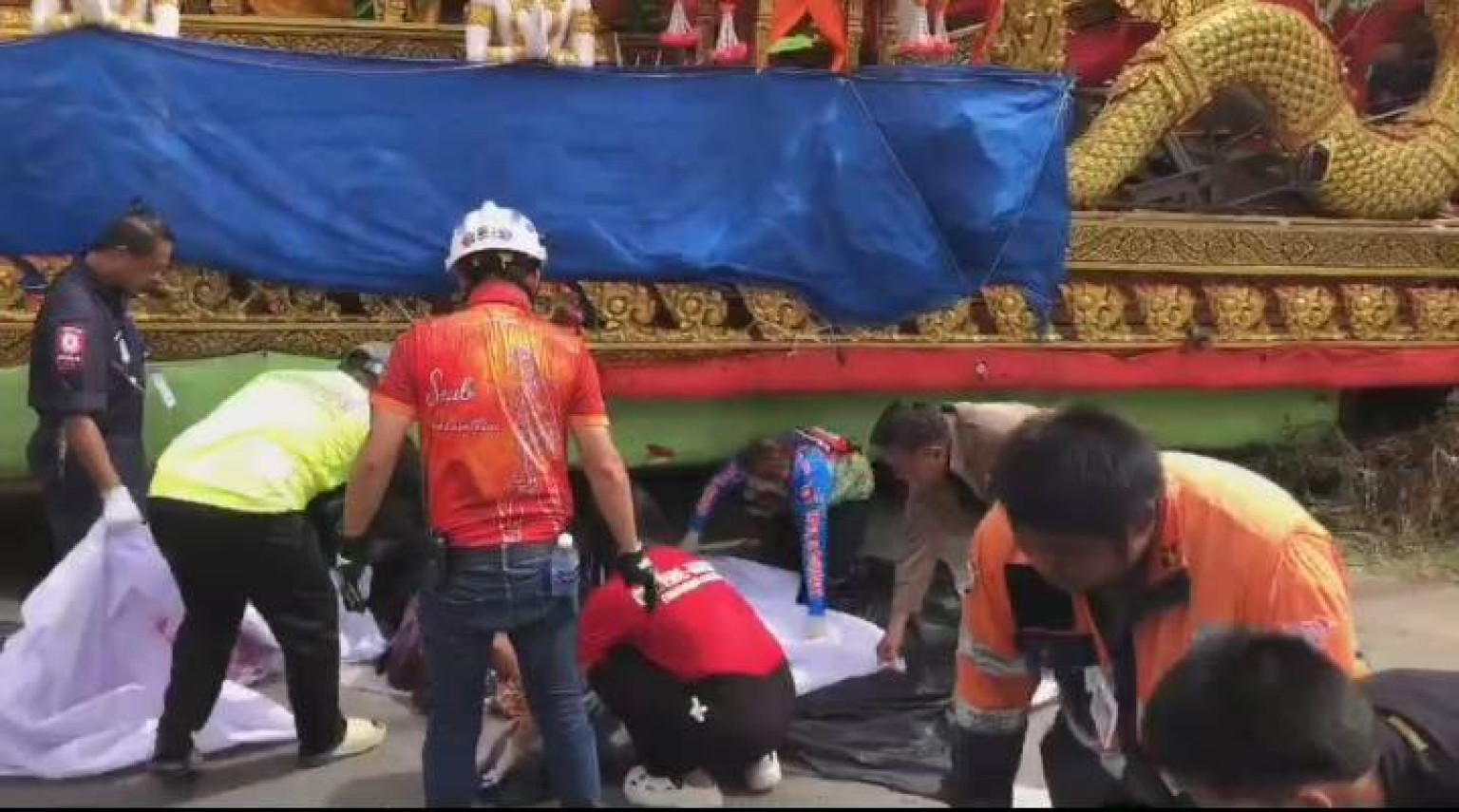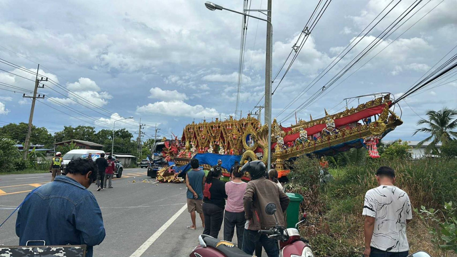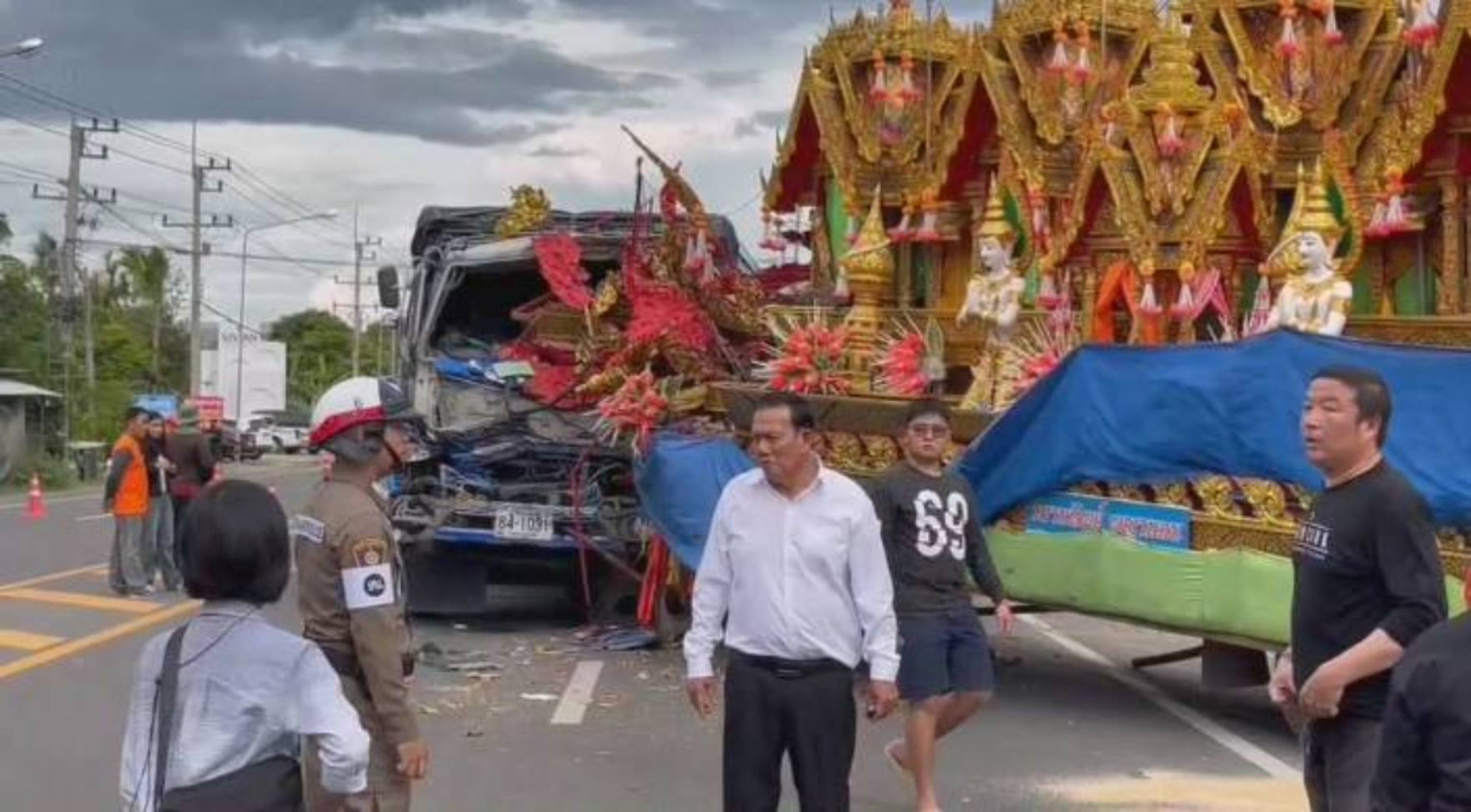 อุทัยธานี อุทาหรณ์!!รถพ่วงบรรทุกข้าวก้มหยิบมือถือ ขับรถชนท้ายรถหกล้อบรรทุกขบวนบุญแห่บุญบั้งไฟ ดับ 1 ราย