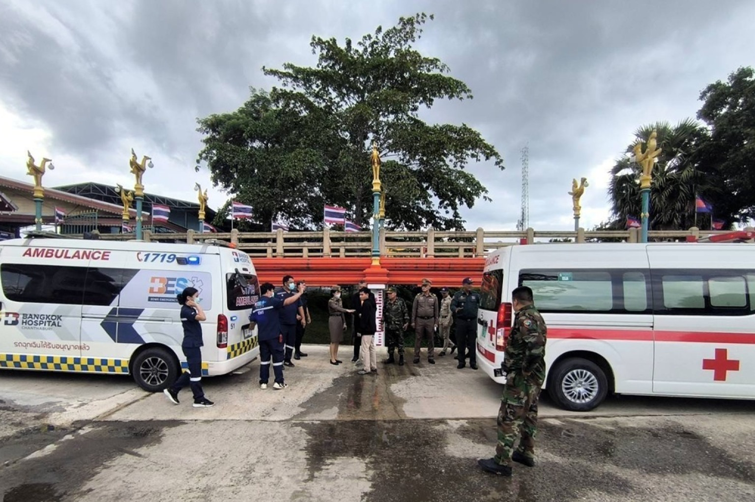 เมื่อเวลา 07.00 น. วันที่ 7 ก.ค.68 กองบัญชาการป้องกันชายแดนจันทบุรีและตราด หน่วยเฉพาะกิจนาวิกโยธินจันทบุรี โดยชุดควบคุมทหารพรานที่ 2 ได้รับการประสานจากหน่วยประสานงานชายแดนประจำพื้นที่จังหวัดจันทบุรี สำนักงานประสานงานชายแดนไทย-กัมพูชา ในการขออำนวยความสะดวกการผ่านแดนให้กับ นางฮัน อายุ 62 ปี (ผู้ป่วยโรคเส้นเลือดในสมองตีบ) พร้อมผู้ร่วมเดินทาง 2 คน ในการเดินทางออกจาก ประเทศไทย ณ จุดผ่านแดนถาวรบ้านแหลม ต.เทพนิมิต อ.โป่งน้ำร้อน จ.จันทบุรี และพื้นที่ควบคุม หลังจากรับการรักษาพยาบาลที่ รพ.กรุงเทพจันทบุรี อ.เมืองจันทบุรี เสร็จเรียบร้อย