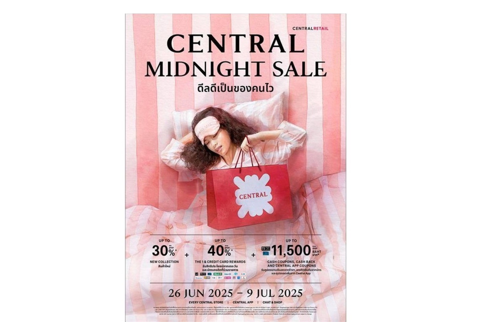 ต่อเนื่องความสำเร็จจาก “Central Midnight Sale” เมื่อต้นปี ที่มีกิมมิกอย่างการจัดปาร์ตี้ชวนลูกค้าใส่ชุดนอนมาช้อปปิ้งที่ห้างเซ็นทรัล เป็นอีเว้นต์แห่งปีที่ได้รับคำชมและถูกพูดถึงเป็นอย่างมาก สู่ความสนุกภาคต่อกับ “Central Midnight Sale” คอนเซ็ปต์ “ดีลดีเป็นของคนไว” ที่กระตุ้นนักช้อปและสายดีลฮันเตอร์ให้อยากรีบไปห้างเซ็นทรัลทันที ด้วยมีสินค้าแบรนด์ชั้นนำทั้งไทยและต่างประเทศ มีแบรนด์ไอคอนิก แบรนด์เกาหลี และไทยแบรนด์ที่กำลังมาแรง นำเข้ามาให้ลูกค้าห้างเซ็นทรัลได้อัปเดตของใหม่ก่อนใคร และเป็นแคมเปญแบบออมนิแชนแนลที่เชื่อมสิทธิพิเศษทั้งออฟไลน์-ออนไลน์ ให้ทุกประสบการณ์ช้อปรับดีลดีไร้รอยต่อตลอด 14 วันเต็มที่ห้างเซ็นทรัลทุกสาขา, Central App และทุกแพลตฟอร์มช้อปปิ้ง ระหว่างวันที่ 26 มิ.ย.-9 ก.ค.68