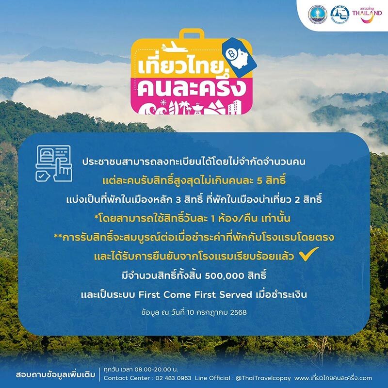 อ่านข่าวต้นฉบับได้ที่ : เปิดลงทะเบียนรอบใหม่แล้ว เที่ยวไทยคนละครึ่ง 2568 ยันระบบพร้อม ไร้ปัญหา