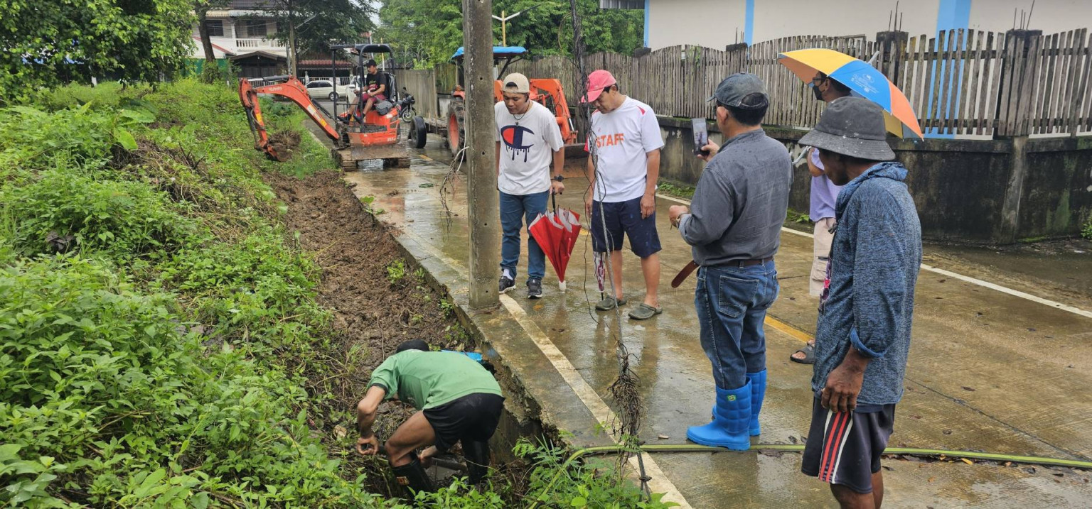 “นายกเบิ้ม” นำทีม ลุย ขุดลอกไหล่ทางเปิดเส้นทางน้ำไหลแก้ไขปัญหาน้ำท่วมขังในชุมชนตาลเดี่ยว “ทำทันที”