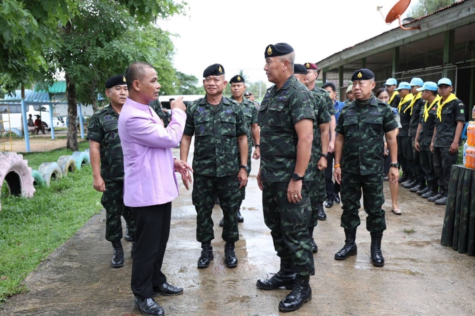 เมื่อเวลา 09.30 น. วันที่ 13 มิ.ย.68 พล.อ.พนา แคล้วปลอดภัย ผบ.ทบ. เดินทางโดยเฮลิคอปเตอร์ลงจอดที่หน่วยเฉพาะกิจกรมทหารพรานที่ 23 อ.กันทรลักษ์ จ.ศรีสะเกษ รับฟังบรรยายสรุปสถานกาการณ์ จากกองกำลังสุรนารี กองทัพภาคที่ 2 พร้อมตรวจเยี่ยมฐานปฏิบัติการ เพื่อให้กำลังใจ พร้อมมอบสิ่งของบำรุงขวัญให้ทหารที่ปฏิบัติหน้าที่ตามแนวชายแดนไทย-กัมพูชา โดยมี พล.ท.บุญสิน พาดกลาง แม่ทัพภาคที่ 2 ให้การต้อนรับ