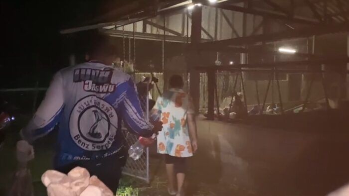 ซึ่งเคสนี้ ครูมงคล เจ้าของฟาร์มวัว บอกกับเจ้าหน้าที่ว่า ได้ยินเสียงวัวร้องตลอดทั้งคืนมาหลายคืนแล้ว แต่หาสาเหตุไม่เจอ จนกระทั่งเมื่อเช้าวันนี้ ขณะกำลังมาให้อาหารวัว เห็นงูเห่าตัวใหญ่กำลังเลื้อยเข้าไปใต้พื้นปูน จึงแจ้งน้องเบนซ์มาช่วยจับ