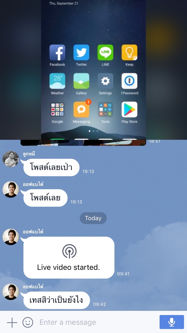 ซึ่งการบันทึกเสียงสำหรับไลฟ์หน้าจอนี้ก็น่าจะได้รับการปรับปรุงเพิ่มเข้าไปในไลน์รุ่นถัดๆ ไปครับ อาจจะมีการรวมภาพผู้ไลฟ์จากกล้องหน้าติดเข้าไปด้วยก็ได้ ก็ต้องรอกันต่อไปครับ ส่วน iOS ไม่ต้องหวังฟีเจอร์ไลฟ์หน้าจอครับ ไม่มีหวังแน่นอน จนกว่าแอปเปิ้ลจะเปิดให้นักพัฒนาบันทึกจอของ iOS ได้