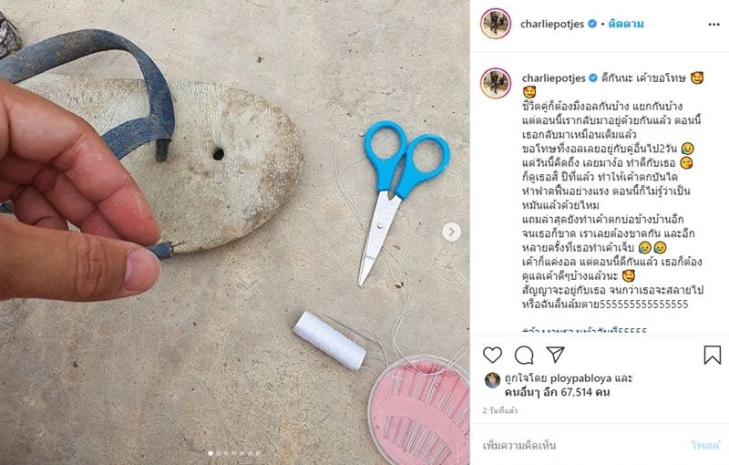 สงสารเลยเห็นรองเท้าแน็ก โพสต์อะไรก็เป็นที่จับตาของแฟนๆ มีเรื่องราวให้ได้เรียกเสียงฮา ล่าสุด แน็ก ชาลี โพสต์ภาพรองเท้าแตะถูกใช้งานจนเก่ามากๆแล้ว แถมขาดด้วย แต่หนุ่มแน็ก ยังคงนำมาซ่อมจนสำเร็จ กลับมาใช้ใหม่ได้ พร้อมโพสต์เรื่องราวติดตลกเรียกเสียงฮาไปอีกว่า