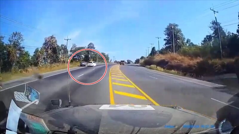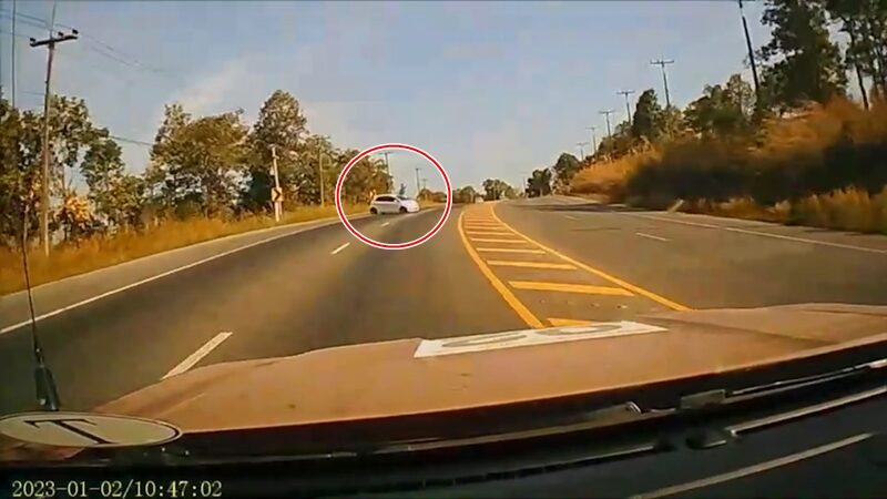คลิปนาทีระทึก กล้องหน้ารถบันทึกเหตุการณ์ ขับรถอยู่ดี ๆ เก๋งหลุดโค้ง หมุนเคว้ง 360 องศา พุ่งข้ามเลน หักหลบแทบไม่ทัน