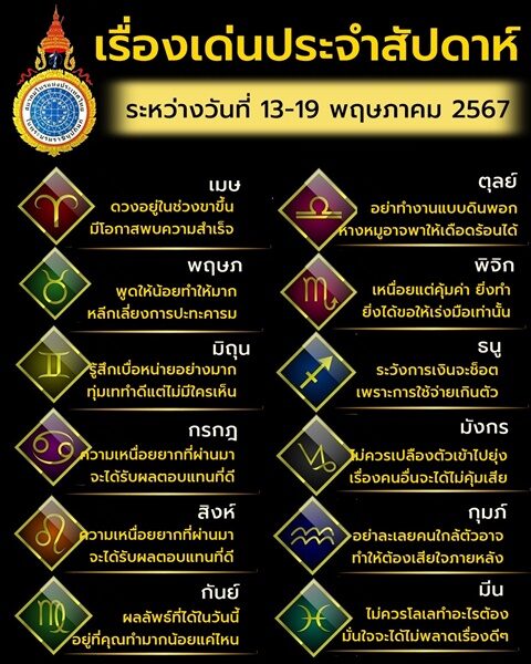 อ่านข่าวต้นฉบับได้ที่ : สมาคมโหรฯ เปิดเรื่องเด่นประจำสัปดาห์ ดวง 12 ราศี เช็กเลยมีอะไรบ้าง