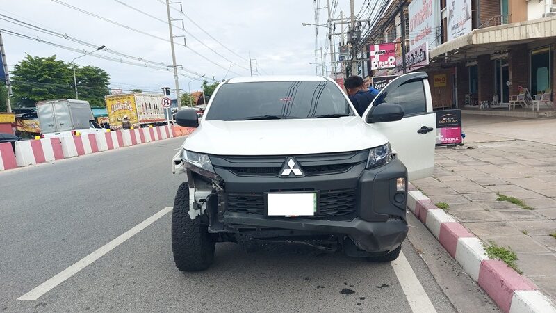 สอบถามชาวบ้านเบื้องต้น ทราบว่า รถกระบะดีแมกซ์ดำ ขับมาจากสุขุมวิทวิ่งเข้าอ่างศิลา จยย.เด็กมาทางเดียวกับดีแมกซ์ รถกระบะดีแมกซ์จะเลี้ยวยูเทิร์น ตัดหน้า รถ จยย. ทำให้เฉี่ยวชนข้างประตู แล้วล้มไปฝั่งตรงข้าม ทำให้รถกระบะมิตซูบิชิ สีขาววิ่งมาทางตรงชนซ้ำ