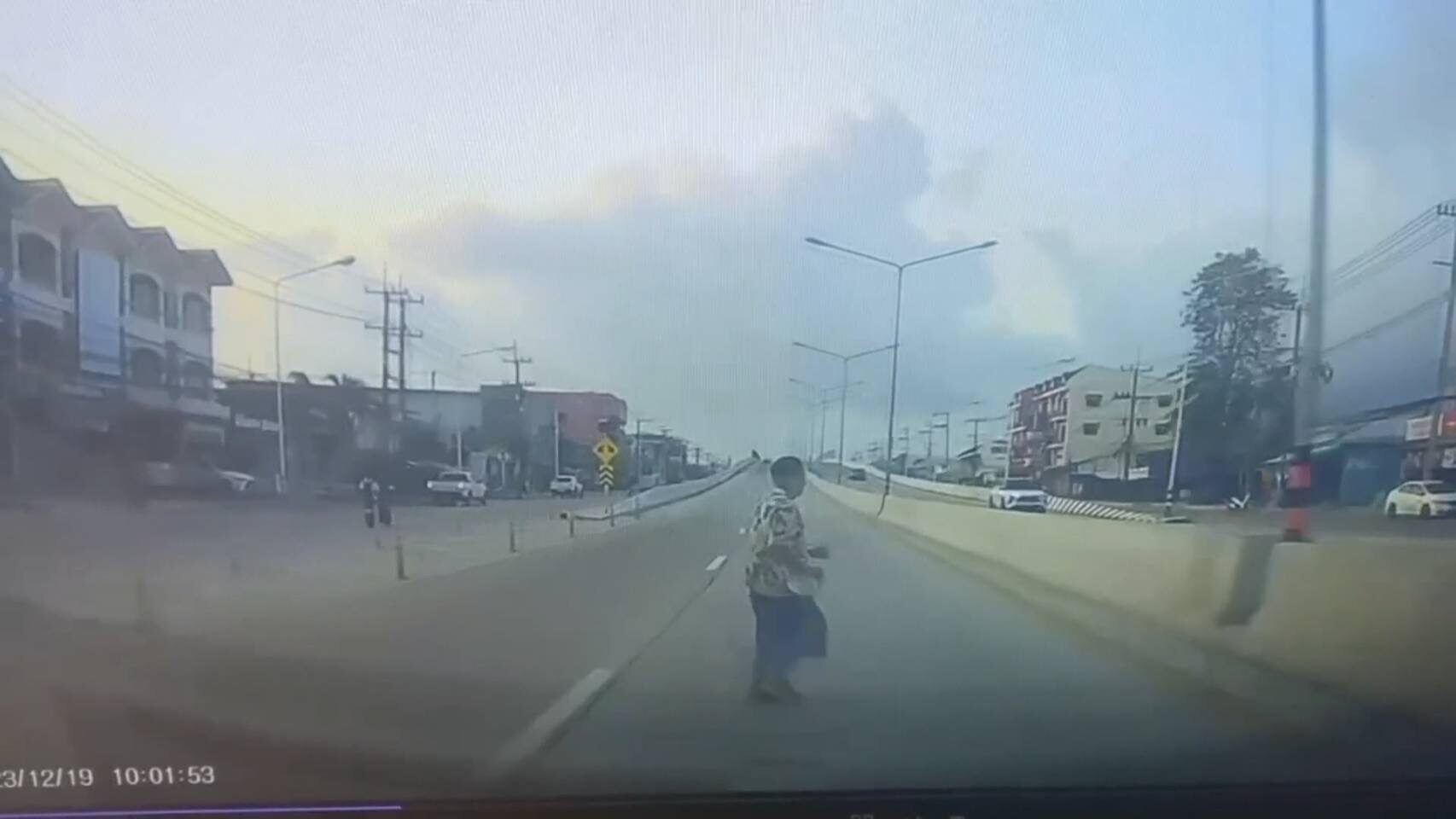 ทั้งนี้ กล้องหน้ารถสามารถบันทึกภาพขณะเกิดเหตุไว้ได้อย่างชัดเจน โดยปรากฏภาพช่วงเวลาที่หญิงชรากำลังเดินข้ามถนนบนสะพาน ถูกรถเก๋งพุ่งชนอย่างจัง