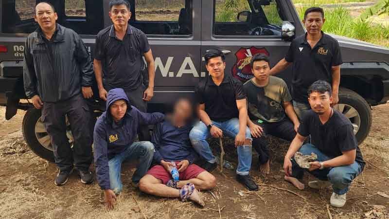 กระทั่งทราบว่าผู้ต้องหาทิ้งรถยนต์หลบหนี ปีนขึ้นไปซ่อนตัวอยู่บนยอดเขาที่สูงชัน ในเขตห้ามล่าสัตว์ป่าอุทยานสมเด็จพระศรีนครินทร์กาญจนบุรี เจ้าหน้าที่จึงติดตามไป ด้วยการเดินเท้าไต่ไปบนยอดเขาระดับความชันประมาณ 80-90 องศา จนพบผู้ต้องหานอนหลบซ่อนตัวอยู่ด้านบนสันเขา เจ้าหน้าที่จึงคุมตัวลงมาจากยอดเขาซึ่งเป็นไปด้วยความยากลำบาก
