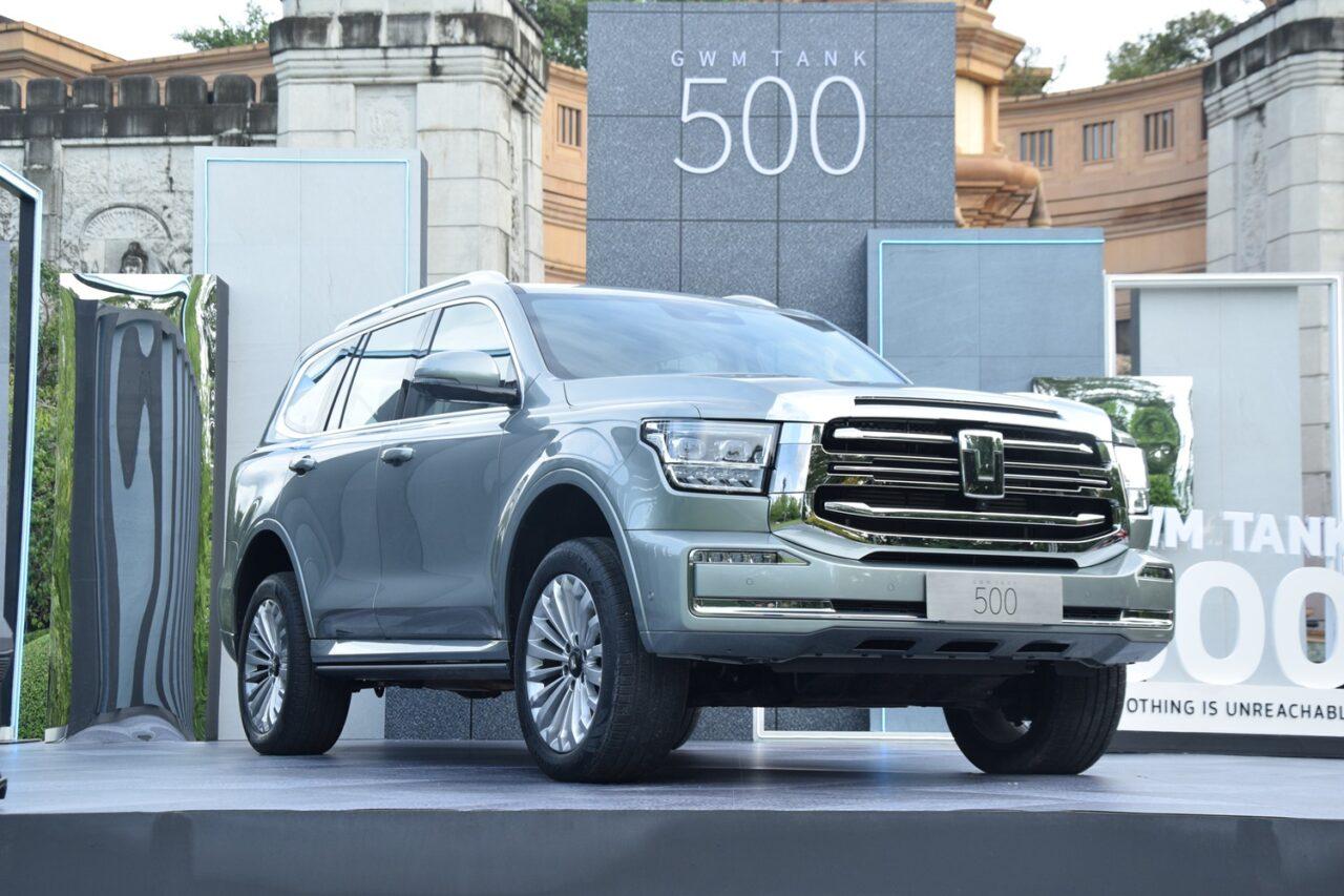 ทางด้าน GWM TANK 500 เอสยูวีรุ่นใหญ่พร้อมรูปทรงทรงพลังบึกบึน แกร่ง เรียบง่ายและหรูหราเป็นเอกลักษณ์ ตอบโจทย์ผู้ใช้งานในทุกมิติตั้งแต่หน้ารถจรดท้ายรถเริ่มที่ด้านหน้าเด่นด้วยกระจังหน้าโครเมียมขนาดใหญ่ผสานช่องระบายอากาศแนวนอนและโลโก้ TANK ที่ลงตัวรับเส้นสายที่นูนขึ้นของฝากระโปรงไฟหน้า Intelligent LED ดีไซน์โดดเด่นด้วยระบบอัจฉริยะ อาทิ ระบบเปิด-ปิดไฟหน้าอัตโนมัติ ระบบปรับไฟสูง-ต่ำอัตโนมัติและฟังก์ชันหน่วงเวลาไฟส่องทางหลังดับเครื่อง (Follow me home) พร้อม Daytime Running Light และไฟตัดหมอกหน้า LED บันไดข้างระบบไฟฟ้าพร้อมฟังก์ชัน เปิด-ปิดอัตโนมัติเมื่อเปิด-ปิดประตู หลังคาซันรูฟแบบพาโนรามิคขนาดใหญ่ เปิด – ปิดด้วยระบบไฟฟ้า ราวหลังคา เสาอากาศแบบ shark fin ล้ออัลลอยขนาด 20 นิ้ว พร้อมยางขนาด 265/50 R20