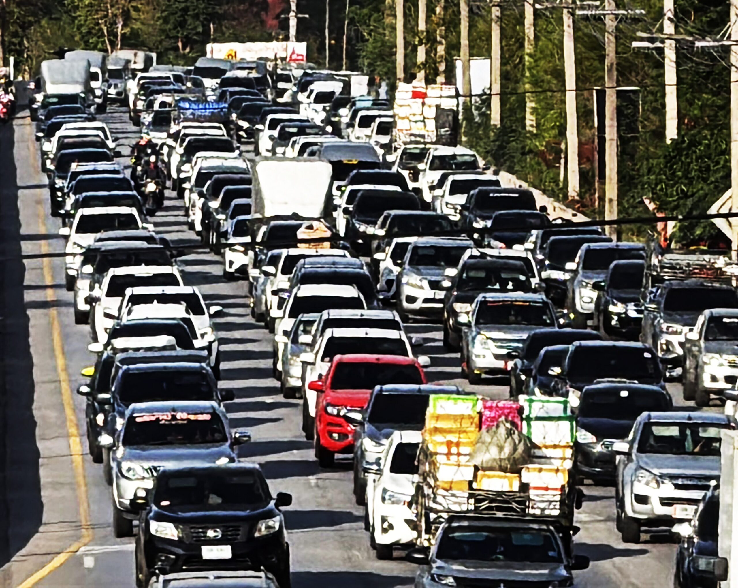 มิตรภาพติดหนึบ แห่ขึ้นอีสานเที่ยวสงกรานต์ รถเยอะเคลื่อนตัวช้า เต็มทุกช่องจราจร