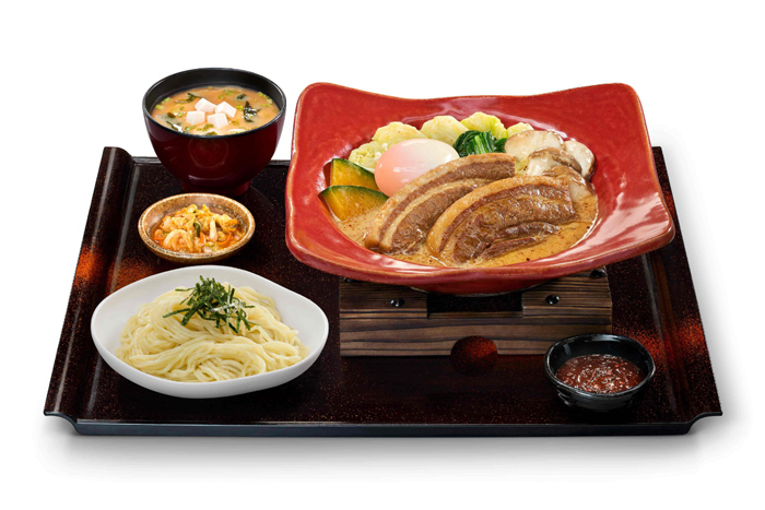 คาคุนิ นาเบะ เทโชกุ (289 บาท): หมูคาคุนิชิ้นโตที่ผ่านการตุ๋นยาวนานหลายชั่วโมงจนเนื้อนุ่มละลายในปาก ในน้ำซุปกระดูกหมูเข้มข้น เพิ่มความอร่อยเผ็ดสไตล์ญี่ปุ่นด้วยซอสคาระมิโสะ ที่ใครได้ลองก็ต้องติดใจกับน้ำซุปรสชาติกลมกล่อมได้แรงบันดาลใจจากเมนูเส้นยอดขายอันดับหนึ่งอย่างราเม็งแชมป์เปี้ยน เสิร์ฟพร้อมข้าวญี่ปุ่นหรือเส้นราเม็งที่ลูกค้าเลือกเองได้ตามต้องการ พร้อมกิมจิ ซุปมิโสะ และซอสคาระมิโสะเพิ่มความเผ็ดยิ่งขึ้น