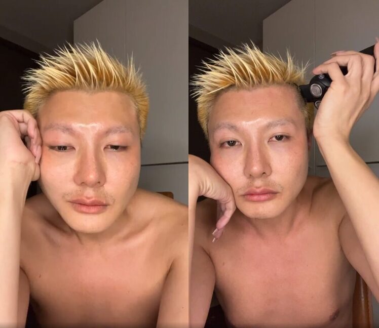 โดยนั่งเงียบ สีหน้าดูไม่ค่อยดี ร้องไห้ ก่อนจะตัดสินใจโกนผมตัวเองจนหมดหัว ทั้งนี้ยังมีเพียงการเปิดเสียงเพลงคลอ ๆ ตลอดการไลฟ์สด 26.30 นาที โดยไม่มีการพูดอะไร