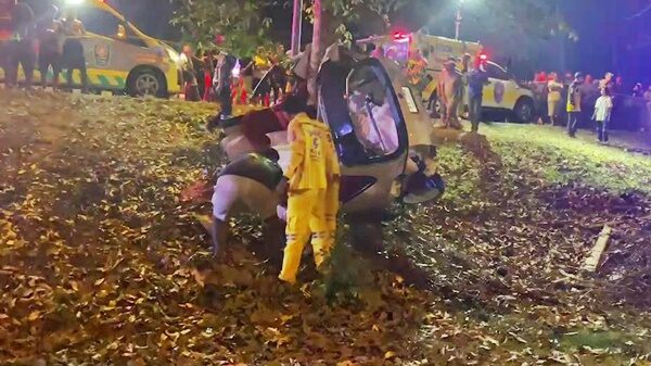 วันที่ 4 มี.ค.2567 พ.ต.อ.กิตติชัย ไกรนรา ผกก.สภ.เมืองนครศรีธรรมราช เปิดเผยว่า เมื่อเวลา 20.00 น.ของวันที่ 3 มี.ค.ที่ผ่านมา ได้รับแจ้งเหตุรถเก๋งเสียหลักชนต้นไม้ขาด 2 ท่อน บริเวณถนนน้ำแคบ ม.1 ต.ท่างิ้ว อ.เมือง จ.นครศรีธรรมราช จึงรุดไปตรวจสอบพร้อมพนักงานสอบสวน แพทย์เวร โรงพยาบาลมหาราชนครศรีธรรมราช และเจ้าหน้าที่มูลนิธิไต้เต็กงตึ๊ง