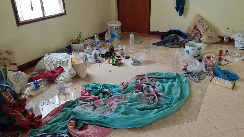 โดยพบว่าหอพักแห่งนี้มีจำนวน 2 ชั้น ชั้นละ 7 ห้อง ซึ่งนายทัศพงษ์ ผู้ก่อเหตุพักอาศัยอยู่ที่ห้อง B7 ซึ่งอยู่ชั้น 2 ห้องซ้ายสุดของหอพัก ถูกเปิดประตูทิ้งไว้ ภายในห้องพักเต็มไปด้วยกองเสื้อผ้า กองขยะถุงอาหารสำเร็จรูป ขวดน้ำอัดลม และขวดเหล้าขาว ในสภาพสกปรกรกรุงรัง