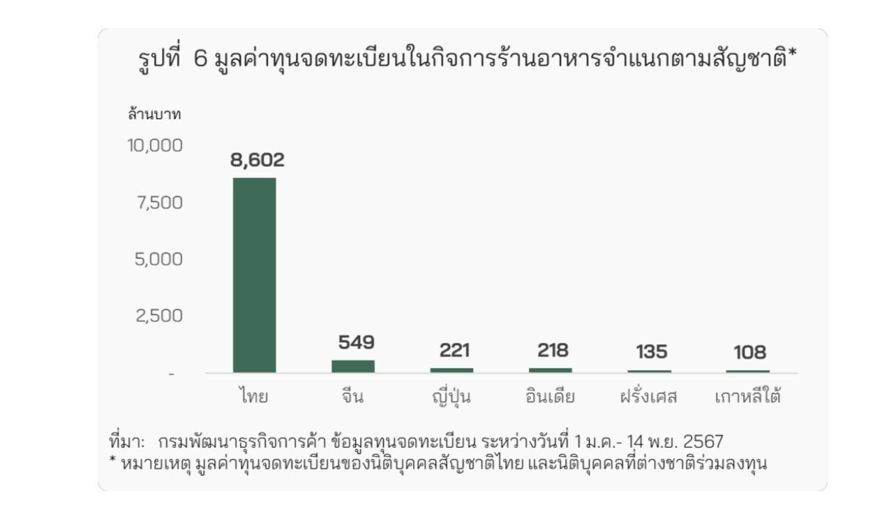 โดยตั้งแต่ต้นปี 2567 กลุ่มร้านอาหารและเครื่องดื่มจากจีน มีมูลค่าการลงทุนที่เร่งตัวขึ้น และแนวโน้มการเข้ามาลงทุนน่าจะเพิ่มสูงขึ้น
