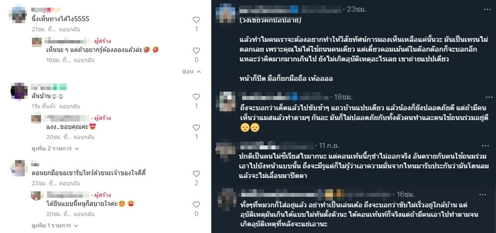 เมื่อคลิปกลายเป็นไวรัล โดนวิพากษ์วิจารณ์เจ้าของโพสต์ก็ออกมาบอกว่า ตอนถ่ายคลิปสวมหน้ากากใบบัว ถ่ายแถวบ้าน ที่ไม่ค่อยมีรถผ่านไปมา ขับความเร็วแค่ 20 เท่านั้น