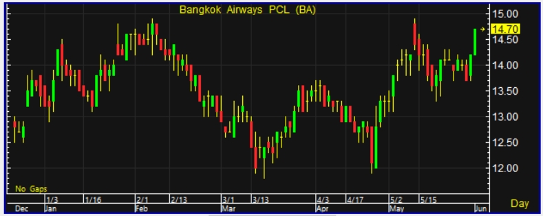 โดยปรับเพิ่มราคาเป้าหมายเป็น 20 บาท จากเดิม 18 บาท เพื่อสะท้อนแนวโน้มธุรกิจสายการบินที่ดีขึ้น BA มีการซื้อขายในระดับการประเมินมูลค่าที่ต่ำเพียง 17 เท่า ของ P/E เชื่อว่าหุ้นมีโอกาสที่จะปรับขึ้นได้จากการถือหุ้นของบริษัท กรุงเทพดุสิตเวชการ จำกัด (มหาชน) หรือ BDMS กว่า 5.21% และสนามบินสมุยที่มีการประเมินมูลค่าในระดับสูง ในขณะที่ธุรกิจสายการบินของ BA ไม่น่าจะฉุดกำไรอีกต่อไป แต่มีแนวโน้มฟื้นตัวต่อเนื่อง