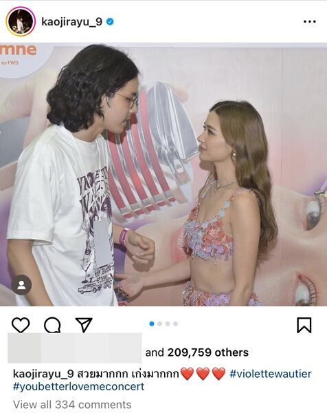 ล่าสุด'เก้า จิรายุ' โพสต์ชม 'วี วิโอเลต' แบบมาช้า แต่มานะ เผยภาพโมเมนต์น่ารักน่าเอ็นดู ที่ได้เข้าไปให้กำลังใจหลังเวที พร้อมระบุว่า"สวยมากกก เก่งมากกก #violettewautier #youbetterlovemeconcert" นอกจากนี้ยังได้ลงภาพโชว์ของสาววี ที่ตัวเองได้ไปนั่งให้กำลังใจหน้าเวทีอีกด้วย