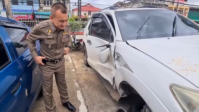 แต่ผู้ขับขี่รถโตโยต้าฟอร์จูนเนอร์ ไม่ยอมให้เอารถลากเข้าโรงพักประวิงเวลาขอให้รอรถจากตัวเมืองอย่างเดียว พนักงานสอบสวนพยายามอธิบายว่า จุดเกิดเหตุเป็นจุดอันตราย ถนน 4 เลนทางตรงไม่มีไฟส่องสว่าง จำเป็นต้องเอารถออกให้พ้นจากที่เกิดเหตุโดยเร็ว เพื่อไม่ให้เกิดเหตุซ้ำซ้อน และอุบัติเหตุครั้งนี้มีผู้บาดเจ็บหลายราย