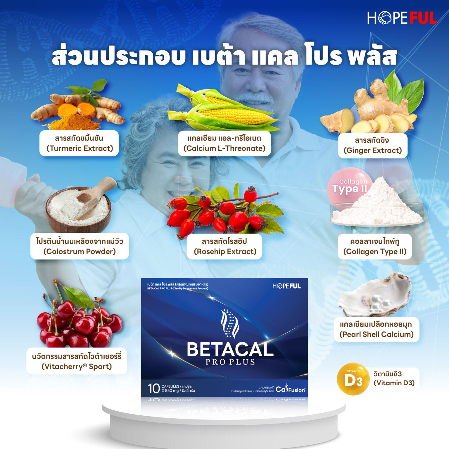 ทั้งนี้บริษัท โฮปฟูล ยังเล็งเห็นถึงความสำคัญของการสร้าง “Healthcare Sustainability” ในการผลักดันให้ชุมชนมีสุขภาพที่ดีแบบยั่งยืน โดยใช้วิธีการป้องกันโรคแทนการรักษา ผ่านผลิตภัณฑ์เสริมอาหารคุณภาพสูง ปลอดภัยให้กับผู้คน นอกหนือจากผลิตภัณฑ์ Beta Cal Pro Plus ก็ยังมีผลิตภัณฑ์เสริมอาหารอื่น ๆ อีกมากมาย อาทิ Beta Oil , Beta Herb , Labfarm ฯลฯ เป็นต้น
