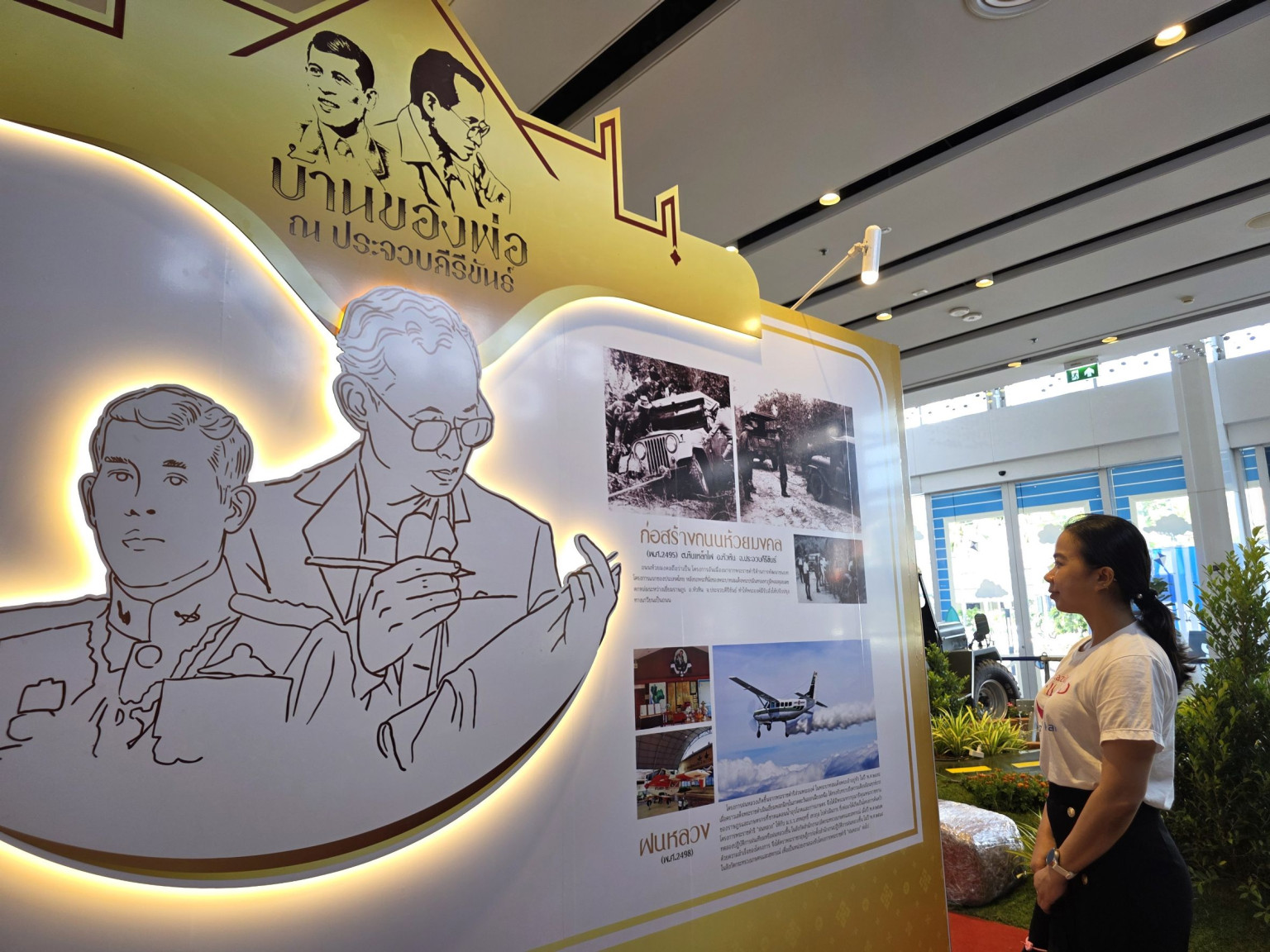 โดยนิทรรศการดังกล่าวจัดขึ้นเพื่อเผยแพร่พระราชกรณียกิจและพระอัจฉริยภาพในหลากหลายด้าน โดยมีการจำลองเหตุการณ์สำคัญเมื่อครั้งในหลวงรัชกาลที่ 9 เสด็จพระราชดำเนินยังห้วยมงคล และรถจิ๊ปพระที่นั่งเกิดติดหล่ม ซึ่งนำไปสู่ โครงการพระราชดำริด้านคมนาคมแห่งแรก คือ การก่อสร้าง “ถนนห้วยมงคล” อันเป็นจุดเริ่มต้นของการพัฒนาคุณภาพชีวิตประชาชนในท้องถิ่น