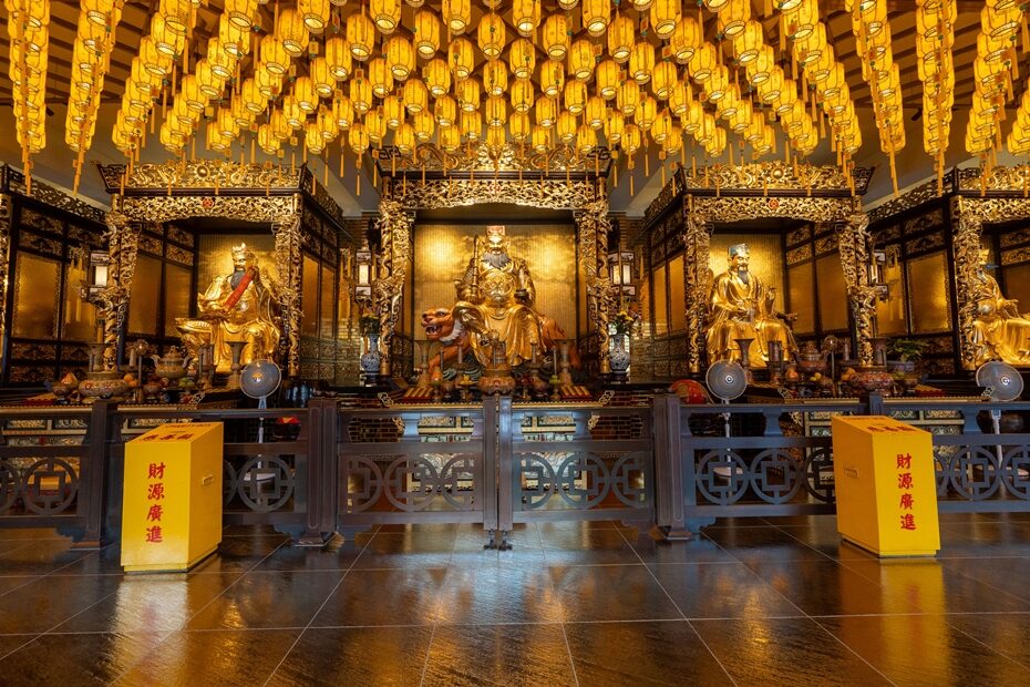 วัดใหญ่ท่ามกลางหุบเขาและแม่น้ำ สร้างขึ้นในปี ค.ศ. 1950 ไฮไลท์สำคัญคือ "หอฟ้า" อาคารทรงหกเหลี่ยมจำลองจากหอฟ้าเทียนถานในปักกิ่ง คนมักมาสักการะองค์ไท้ส่วยเอี๊ยที่นี่เพื่อแก้ปีชง และสักการะศาลไฉ่ซิงเอี๊ย ศาลเทพเจ้าโชคลาภ 5 องค์ที่มอบพรในด้านต่างๆ ตามทิศ