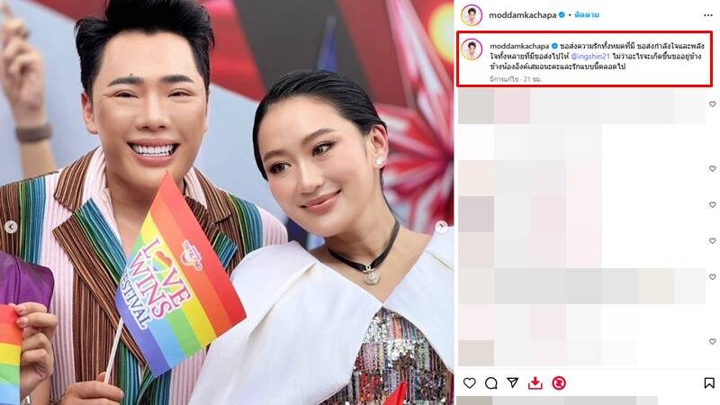 ล่าสุดมดดำ คชาภา ตันเจริญ พิธีกรคนดัง ซึ่งเป็นเพื่อนสนิทของ โอ๊ค พานทองแท้ และครอบครัวชินวัตร ได้ออกมาเคลื่อนไหวผ่านไอจีส่วนตัว โดยโพสต์รูปคู่กับนายกฯ อิ๊งค์ พร้อมเขียนข้อความให้กำลังใจว่า “ขอส่งความรักทั้งหมดที่มี ขอส่งกำลังใจและพลังใจทั้งหลายที่มี ขอส่งไปให้ @ingshin21 ไม่ว่าอะไรจะเกิดขึ้น ขออยู่ข้างๆ น้องอิ๊งค์เสมอนะคะ และรักแบบนี้ตลอดไป”