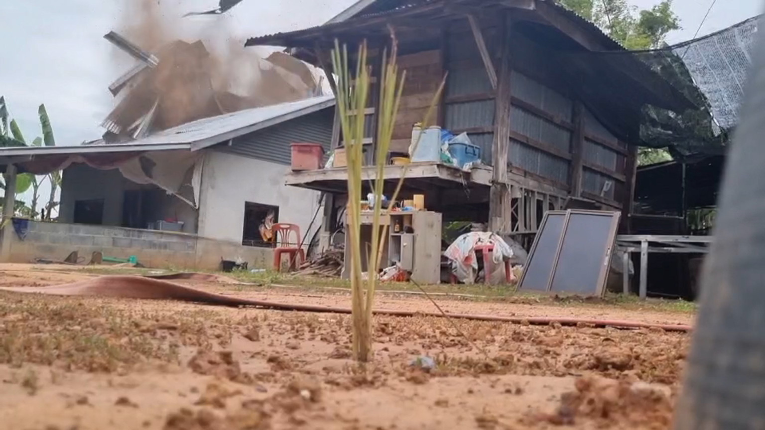 ผู้สื่อข่าวเดินทางไปตรวจสอบที่บ้านเลขที่ 53 ม.6 ต.บ้านกรวด อ.บ้านกรวด จ.บุรีรัมย์ ซึ่งเป็นบ้านนายเสงี่ยม อายุ 64 ปี เจ้าของบ้าน ที่ถูกลูกจรวด BM 21 ของทหารเขมรยิงเข้ามาตกใส่หลังคาทะลุและลูกจรวดเข้าไปฝังอยู่ใต้พื้นดินภายในบ้าน จนกระทั่งมีตำรวจ EOD เข้ามาเก็บกู้ด้วยการใช้วิธีทำลายไปพร้อมกับบ้านเนื่องจากลูกจรวดฝังลึกในใต้ดินประมาณ 4-5 เมตร ทำให้หลังคาบ้านและตัวบ้านได้รับความเสียหายไปประมาณครึ่งหลัง