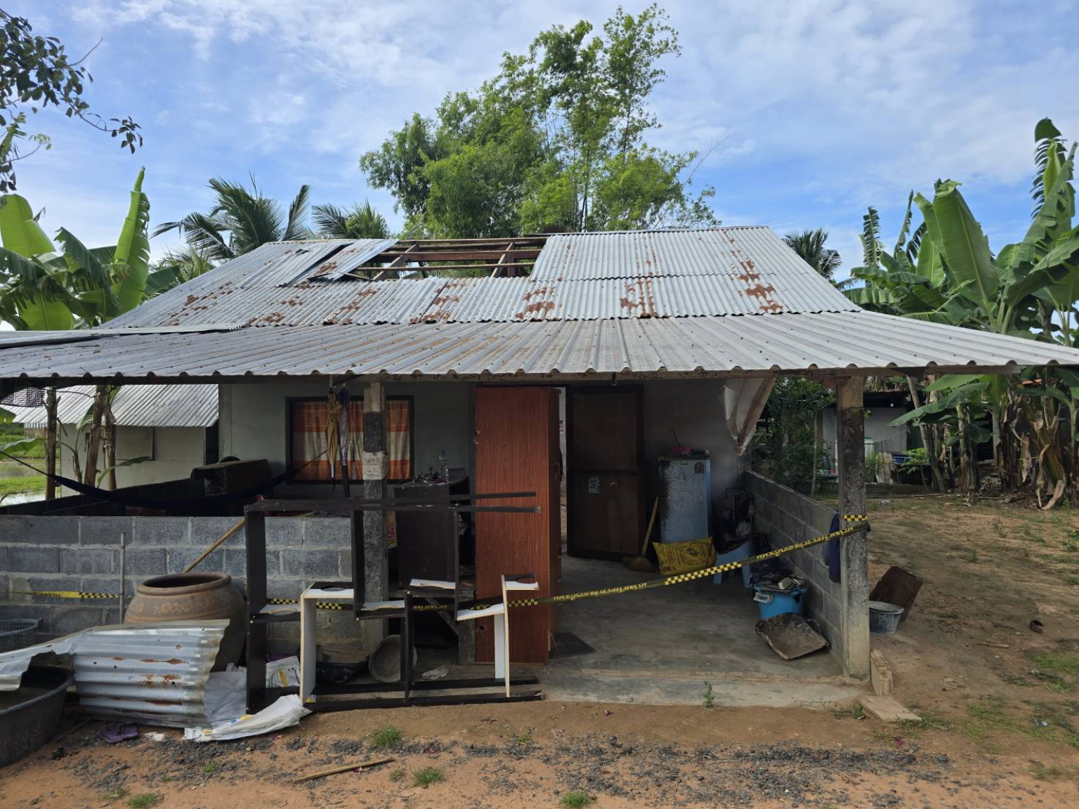 โดยสภาพบ้านยังไม่ได้รับการซ่อมแซม ยังคงร่องรอยของความเสียหายเหมือนเดิม โดยนายเสงี่ยม เจ้าของบ้านเล่าว่า กรณีที่มีการประชุมตกลงกันระหว่างฝ่ายกัมพูชา และฝ่ายประเทศไทยที่ประเทศมาเลเซีย ส่วนตัวไม่น่าเชื่อ เพราะหลัง 6 ทุ่มของคืนที่ผ่านมายังได้ยินเสียงปืนดังปกติ ยังมีการปะทะกันเหมือนเดิม เชื่อใจเขมรไม่ได้ตอนประชุมก็ประชุม หลังประชุมก็มาทำอีก ครั้งนี้ถือเห็นครั้งที่มีการตกลงหยุดยิงก็ยังยิง ตอนนี้บ้านของตนเสียหายจนไม่สามารถเข้าไปอยู่ได้ ตามที่นายอำเภอบอกว่าจะมีคนมารับผิดชอบนั้น ยังไม่มีอะไรแน่ชัด และรับผิดชอบแบบไหนหากเมินเฉยไม่รู้ว่าจะหาเงินจากไหนมาซ่อมบ้าน