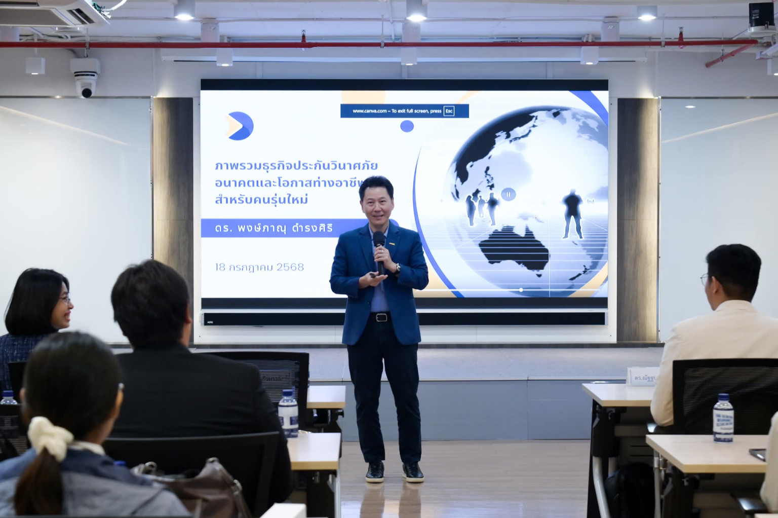 ดร.พงษ์ภาณุ ดำรงศิริ ผู้อำนวยการบริหาร สมาคมประกันวินาศภัยไทย ให้การต้อนรับคณะอาจารย์และนิสิตมหาวิทยาลัยเกษตรศาสตร์ วิทยาเขตศรีราชา หลักสูตรวิทยาการวิเคราะห์ข้อมูลและคณิตศาสตร์ประกันภัย คณะวิทยาศาสตร์ ศรีราชา พร้อมบรรยายพิเศษในหัวข้อ “ภาพรวมธุรกิจประกันวินาศภัย: อนาคตและโอกาสทางอาชีพสำหรับคนรุ่นใหม่” โดยมีรองศาสตราจารย์ณรงค์ฤทธิ์ แก้วบรรจักร์ รองคณบดีคณะวิทยาศาสตร์ ศรีราชา ประธานหลักสูตรวิทยาการวิเคราะห์ข้อมูลและคณิตศาสตร์ประกันภัย คณะอาจารย์ และนิสิต ร่วมรับฟังจำนวน 66 คน