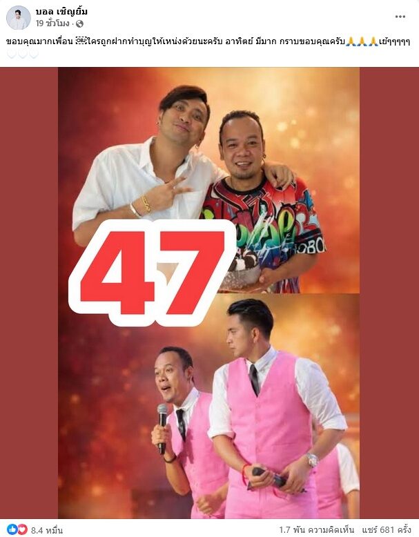 แห่โพสต์เฮกันลั่นหมด เพื่อนๆในวงการตลก เพื่อนๆในรายการ ก็มาดิคร้าบ คนรอบตัวต่างก็รับโชคจาก เหน่ง เหม่งจ๋าย เลขอายุ 47 เข้าตรงๆ รางวัลเลขท้าย 2 ตัว ทำเอาทั้งบอล เชิญยิ้ม , ยูริ ภรรยา บอล , นาย คอมเมเดี้ยน , ท๊อฟฟี่ สามบาทห้าสิบ , แจง ปุณณาสา เมีย แจ๊ส ชวนชื่น เป็นต้น โพสต์รับทรัพย์รับโชค ขอบคุณ เหน่ง กันรัวๆ