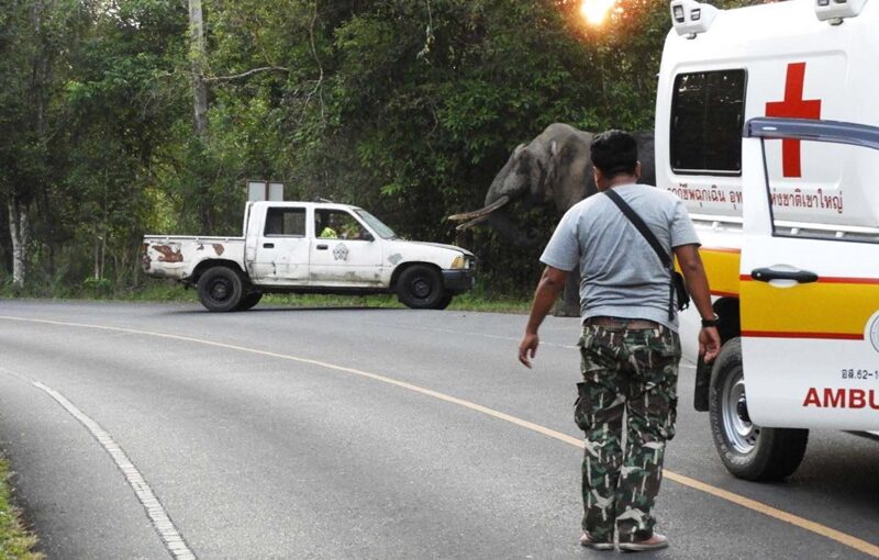 เจ้าหน้าที่อุทยานฯ เขาใหญ่ เล่านาทีระทึก ช้างป่า พลายดื้อ วิ่งเข้าใส่ ใช้งาแทงกระจกรถ เฉียดหน้าหวุดหวิด ก่อนเผ่นหนีเข้าป่ายังตามหาตัวไม่เจอ