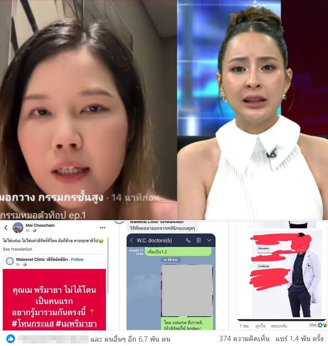 ขยายวงหนักปม เม พรีมายา ออกโหนกระแส เปิดใจศึกธุรกิจคลินิกดังถูกฮุบ ล่าสุดอดีตคู่กรณีหมอหนุ่มต่างออกมาแฉระอุ FCขออันฟอล - รอหมอหนุ่มชี้แจงบ้าง