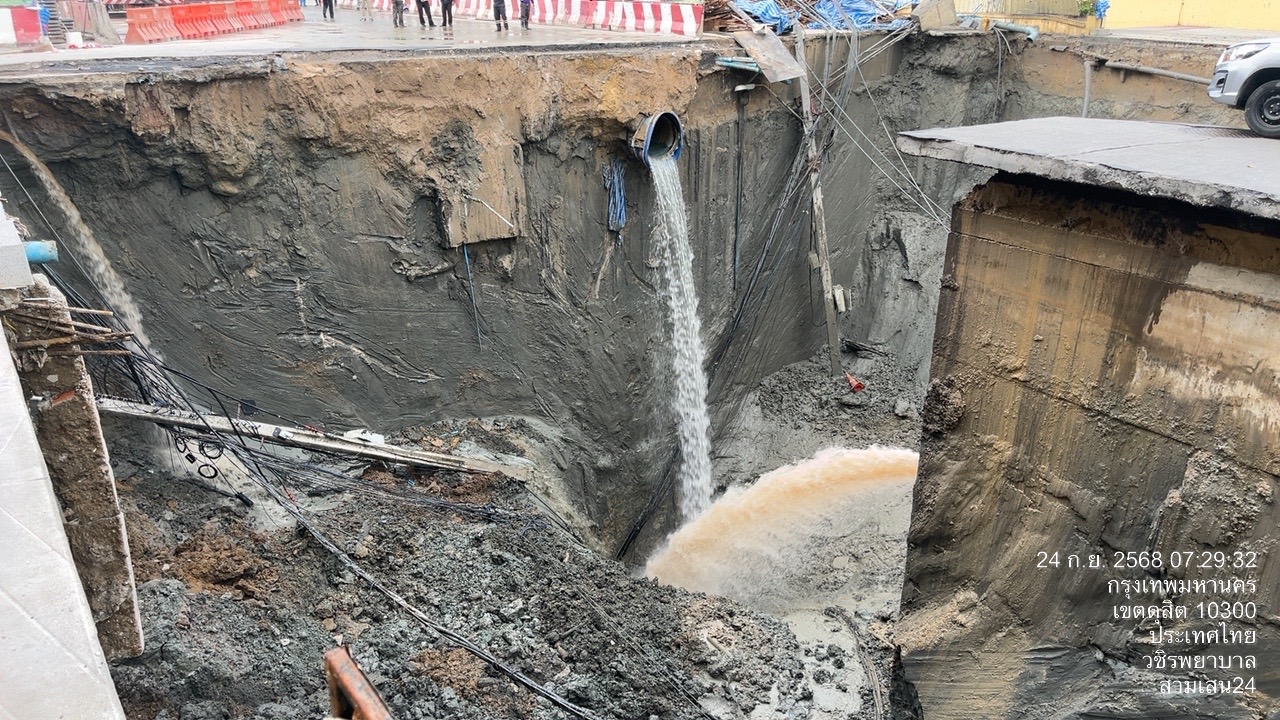 ด้าน กทม.ระบุเพิ่มเติมว่า เจ้าหน้าที่ปฏิบัติหน้าที่อยู่ด้วยความระมัดระวังอย่างสูง และยังไม่มีการยืนยันขนาดของพื้นที่ทรุดตัว (หลุม) ที่ชัดเจน
