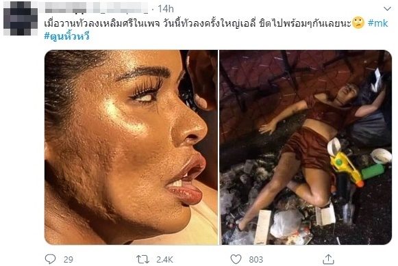 โดยโลกโซเชียลมีการวิจารณ์ #ตูนหิ้วหวี #ตูนขยะ รุนแรง ถึงขั้นขุดภาพและคลิป ต่อว่า ตูนเป็นขยะ
