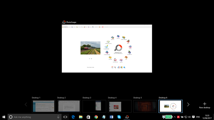 จากนั้นที่มุมล่างด้านขวาให้เลือก New Desktop ก็จะได้หน้าเดสก์ท้อปขึ้นมาอีก 1 หน้า สามารถเลือกโปรแกรมที่ต้องทำงานขึ้นมาได้อีกต่างหาก และสามารถเพิ่มหน้าเดสก์ท้อปจำลองได้มากเท่าที่ต้องการ ที่สำคัญสามารถสลับแต่ละหน้าเดสก์ท้อปด้วยการกดปุ่ม Windows และปุ่ม Ctrl ค้างพร้อมกัน และกดปุ่มลูกศรซ้ายหรือขวาเพื่อเลือกหน้าเดสก์ท้อปที่ต้องการ