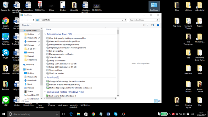 บางครั้งที่อยากจะเข้าไปจัดการระบบต่างๆ ในเครื่อง เช่นเรื่องของเมาส์หรือหน้าจอ หลายคนยังสับสนและงงๆ กับวิธีการเข้าไปเซ้ตระบบตั้งค่าต่างๆ แต่ด้วยเทคนิคนี้จะช่วยให้สามารถเข้าถึงระบบภายในทุกระบบด้วยคลิกเดียวเท่านั้น แถมเทคนิคนี้เขาเรียกชื่อเท่ๆ ว่า “God Mode” เทคนิคนี้ทำง่ายๆ ด้วยการสร้างโฟลเดอร์ใหม่ขึ้นมาจากนั้นเปลี่ยนชื่อดฟล์เดอร์ โดยใส่คำนี้ลงไปในชื่อโฟลเดอร์ “GodMode.{ED7BA470-8E54-465E-825C-99712043E01C}” จากนั้นโฟลเดอร์จะเปลี่ยนเป็นไอคอน God Mode เมื่อคลิกเข้าไปก็จะสามารถเข้าทุกทุกระบต่างๆ ในเครื่องได้ทันที