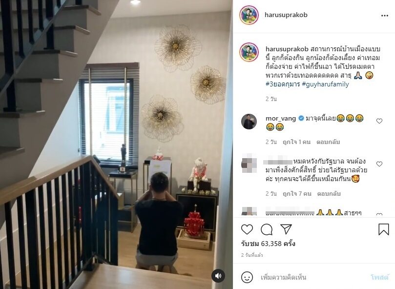 พร้อมทั้งเผยด้วยว่า สถานการณ์บ้านเมืองแบบนี้ ลูกก็ต้องกิน ลูกน้องก็ต้องเลี้ยง ค่าเทอมก็ต้องจ่าย ค่าไฟก็ขึ้นเอา ได้โปรดเมตตาพวกเราด้วยเทอดดดดดดด สาธุ #3ยอดกุมาร #guyharufamily โดยมีคนเข้ามาคอมเมนต์ร่วมสาธุด้วยจำนวนมาก บอกทางนี้ก็แย่ มาถึงจุดนี้เลย