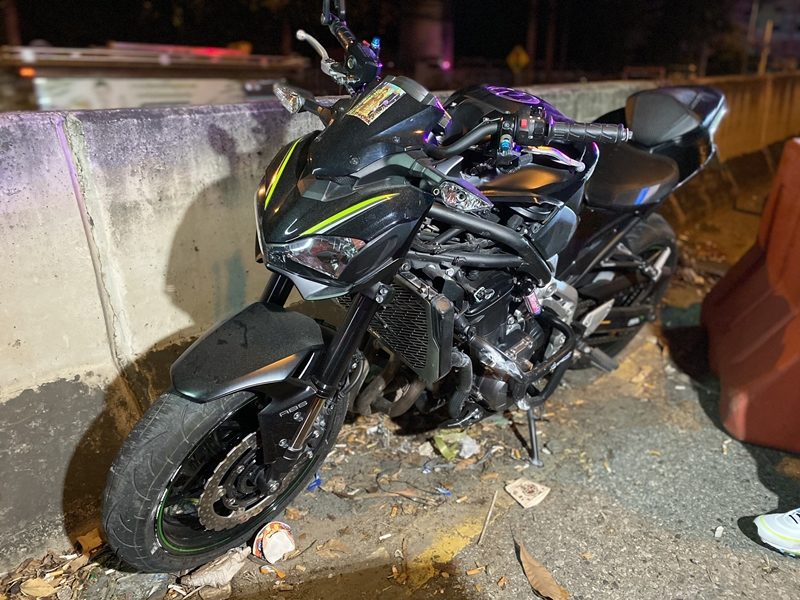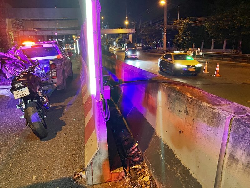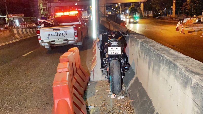 รอยครูดเป็นทางยาว! หนุ่มบิด Z900 พุ่งชนแบริเออร์ดับสลดย่านมีนบุรี