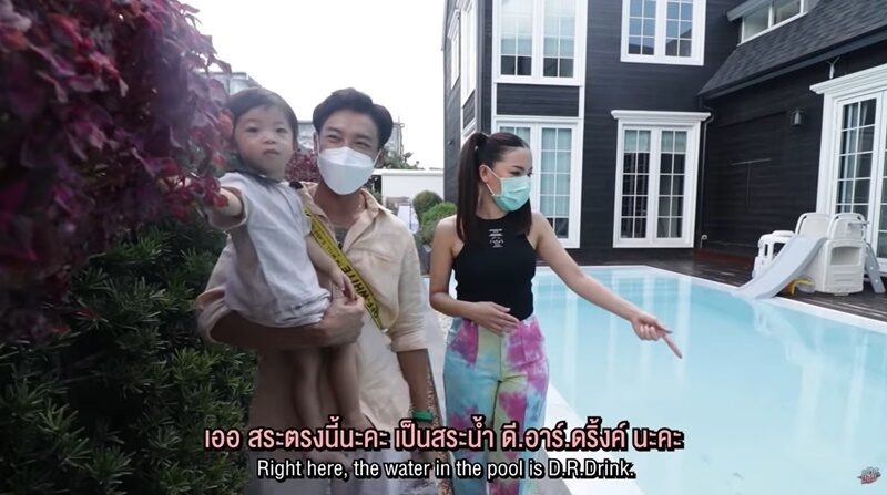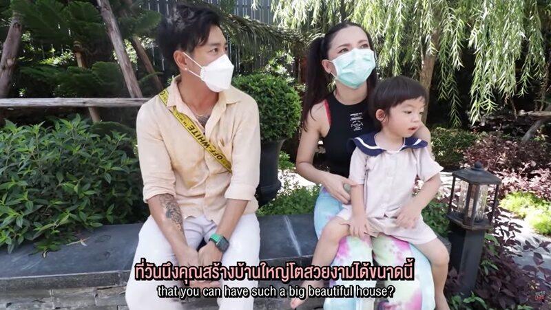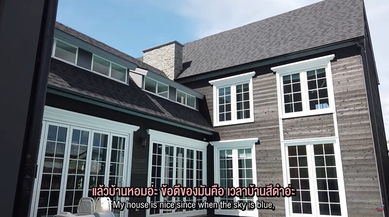 ก่อนพาไปชมบริเวณบ้าน ต้นหอม บอกเลยว่า ข้อดีบ้านสีดำตัดท้องฟ้าสีฟ้า ไม่มีตึกสูงจะสวยมากเวลาถ่ายรูป 50 ล้านก็ไม่แพง สวนสไตล์อังกฤษ ร่มรื่นต้นไม้โตหมดแล้ว ก่อนบอยจัดสวนหน้าบ้านขนม้าลายไก่ชนผูกผ้าสามสีแรดแกล้งต้นหอมจนร้องกรี๊ดเลย