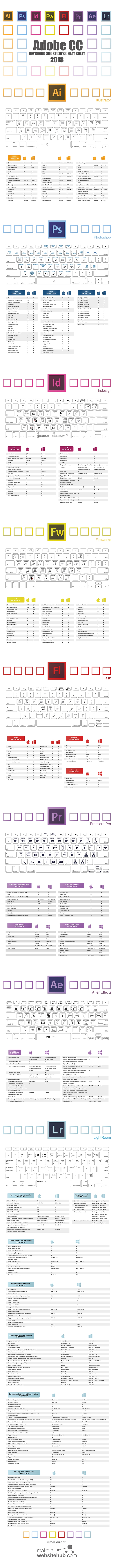 ใครที่ใช้โปรแกรมตกแต่งภาพหรือตัดต่อวิดีโอบ่อยๆ คงทราบดีกว่าการใช้คีย์ลัดช่วยลดเวลาในการทำงานได้ Jamie Spencer ผู้ก่อตั้งเว็บไซต์ Make A Website Hub จึงได้รวบรวมคีย์ลัดสำหรับ Adobe ไว้หลายโปรแกรม อาทิ Illustrator, Photoshop, Indesign, Fireworks, Flash, Premiere Pro, After Effects และ Lightroom ทั้งนี้ ทางผู้จัดทำบอกว่า การใช้คีย์ลัดช่วยให้ลดเวลาในการทำงานต่อวันได้ถึง 30 นาที แม้ตอนนี้คุณจะไม่ได้ใช้ครบทุกโปรแกรม แต่ในอนาคตก็ไม่ได้ ทางที่ดีเซฟภาพเก็บไว้เลยดีกว่า
