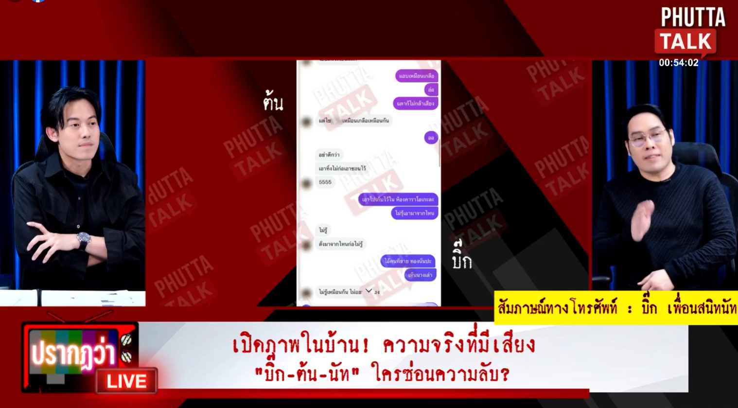 นอกจากนี้ในรายการ พุทธทอล์ก ยังเปิดแชทการสนทนาระหว่าง บิ๊ก ที่แชทคุยกับ ต้น ตอนที่เจอสารไซยาไนด์วางอยู่ที่บ้าน นัทปง โดยข้อความในแชทที่บิ๊กคุยกับต้นเมื่อวันที่ 8 พ.ย.68 เวลา 11.22 น.